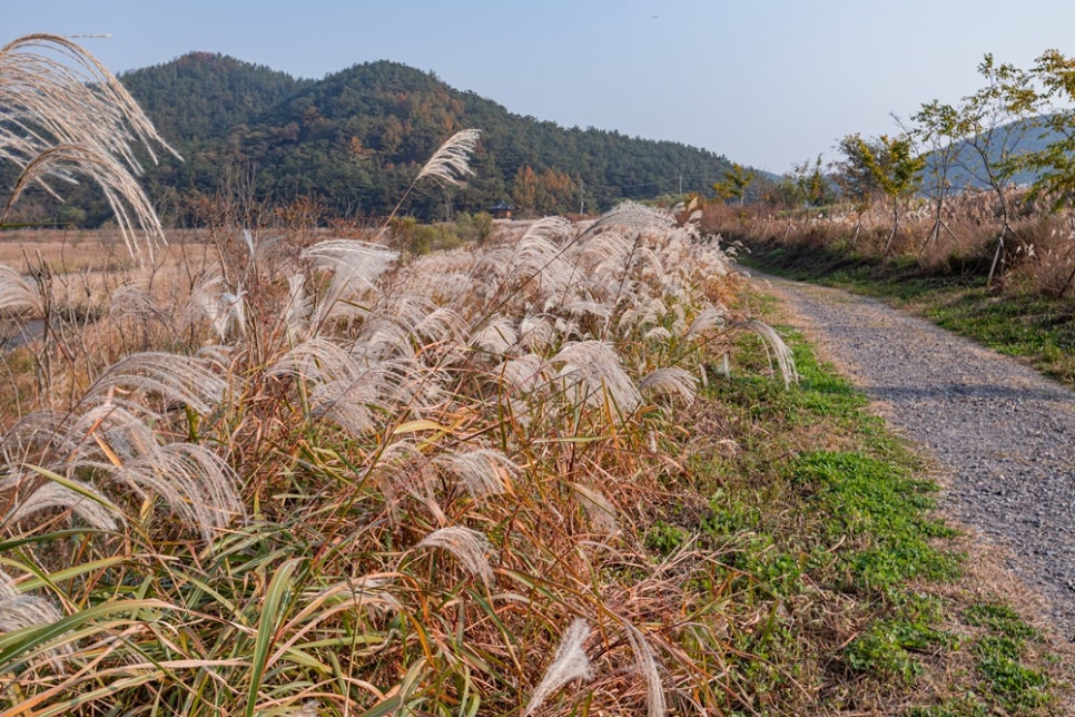 중간에 억새밭 쉼터와 포토존이 있어 사진도 찍고 휴식도 가능하고, 평지 위주로 되어 있어서 아이와 함께 혹은 노약자 동반 산책에도 적합해요.