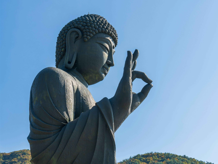 각원사의 가장 큰 상징은 바로 높이 15m의 청동대불입니다. 가까이에서 보면 그 규모에 압도될 정도인데요. 둘레 30m, 귀 길이 175cm, 손톱 길이 30cm, 그리고 무게는 무려 청동 60톤에 달합니다.