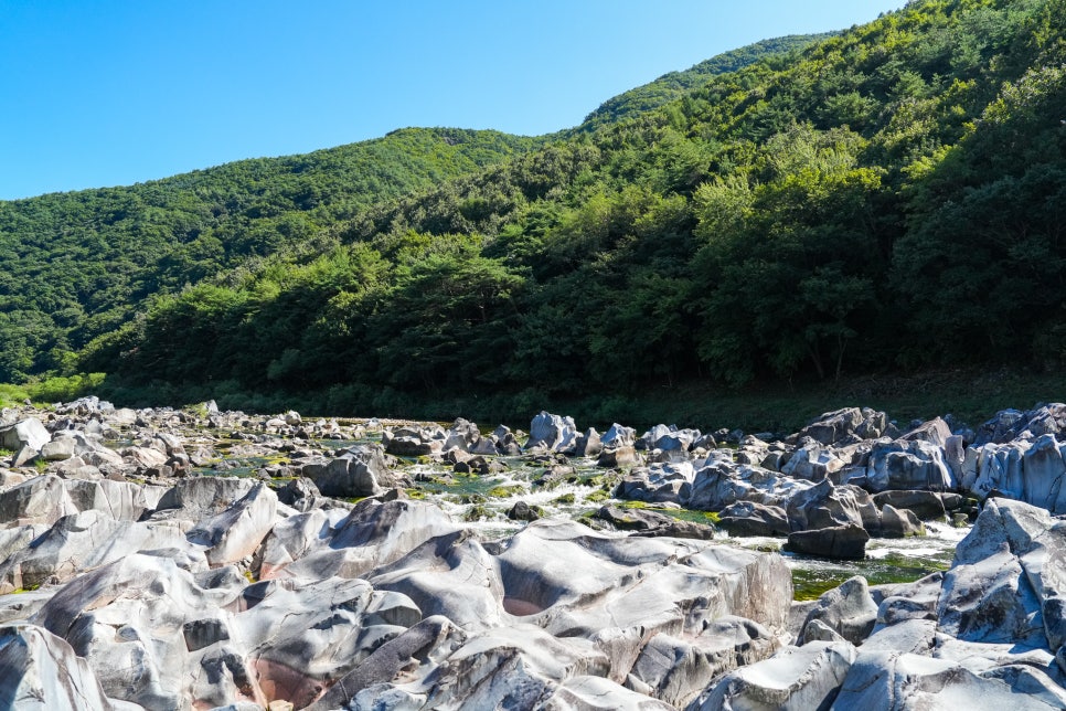 경북 청송군에 위치한 백석탄계곡은 하얀 돌이 반짝이는 아름다운 물길과 유네스코 세계지질공원으로 등재된 신성한 자연 유산이 공존하는, 말 그대로 ‘청송의 보석’ 같은 명소예요.