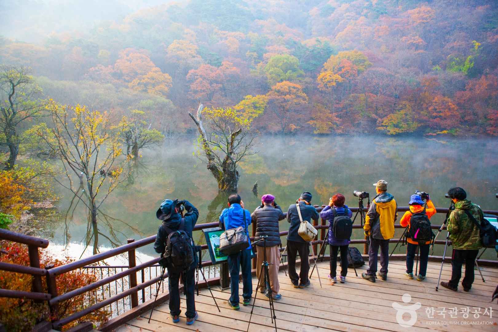 주산지는 사계절 내내 아름답지만, 가을 단풍 시기는 그야말로 절정의 풍경을 선사해요. 매년 10월 말에서 11월 초 사이가 가장 화려한 시기이며, 물안개와 단풍이 함께 어우러진 새벽 풍경은 말 그대로 명화 한 장면 같답니다. 특히 수면 위로 비치는 고목 버드나무와 단풍의 반영은 사진작가들에게도 사랑받는 촬영 포인트예요. 한적하고 조용한 분위기에서 가을 감성을 만끽하고 싶다면, 단풍철 새벽 시간대를 꼭 노려보세요!