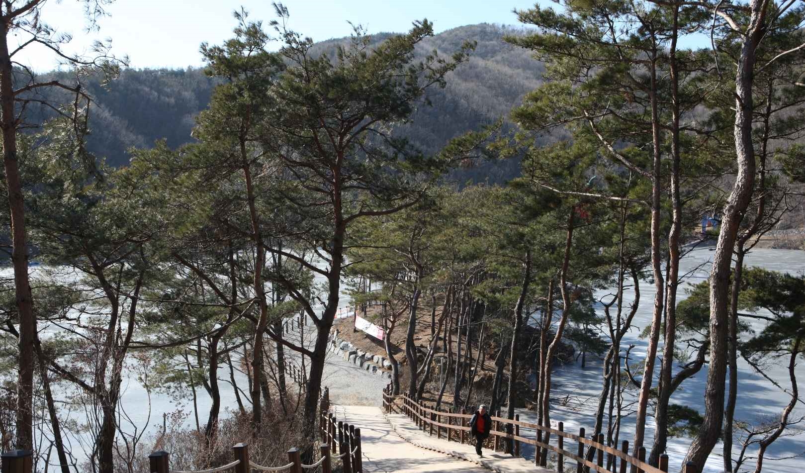 천장호변을 따라 걷는 산책길은 겨울이면 눈 쌓인 나무들과 호수 반영이 어우러져 동화 속을 걷는 듯한 기분을 느끼게 해줘요. 중간중간 설치된 벤치, 정자, 포토존에서 인생샷도 남겨보세요.