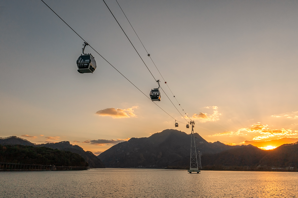 삼악산 호수케이블카는 강원도 춘천의 삼천동에서 출발해, 의암호를 가로질러 삼악산까지 연결되는 국내 최장 거리(3.61km)의 케이블카입니다. 활과 부메랑을 형상화한 독특한 외관과, 바닥이 통유리로 되어 있는 크리스털 캐빈으로 유명하며, 반려견도 동반 가능한 케이블카로 더욱 특별한 경험을 제공합니다. 도착지에는 통유리 카페, 의암호 전망대, 스카이워크 산책로 등 감성 가득한 포토존과 쉼터가 기다리고 있어요.