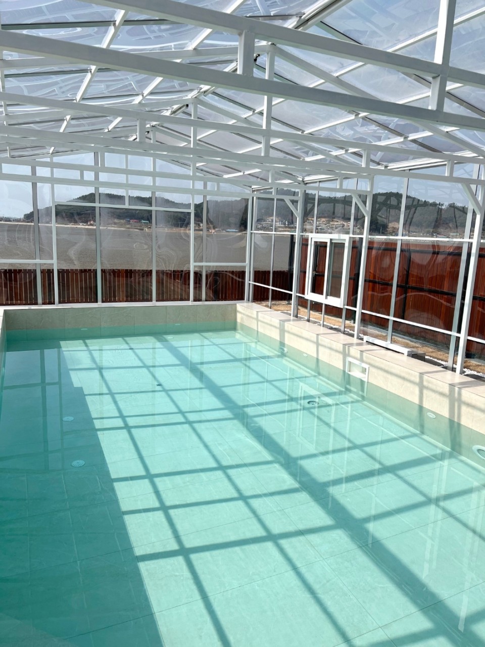 미온수 풀장은 7월~8월을 제외하고 운영됩니다. 사전 현장결제로 이용 가능하며, 온도는 28~32도예요.