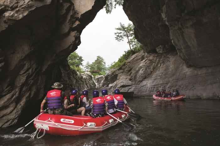 강물이 마치 큰 산을 타고 만든 듯한 석문 형태의 구조는 실제로 보면 입이 떡 벌어질 정도로 압도적인 풍경을 자랑하죠. 높이 30m, 넓이 30㎡의 거대한 석회동굴 같은 구조가 낙동강의 상류 ‘황지천’과 어우러져 한 폭의 동양화처럼 펼쳐집니다.