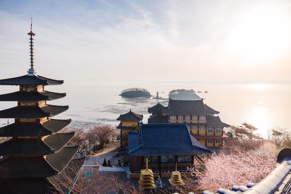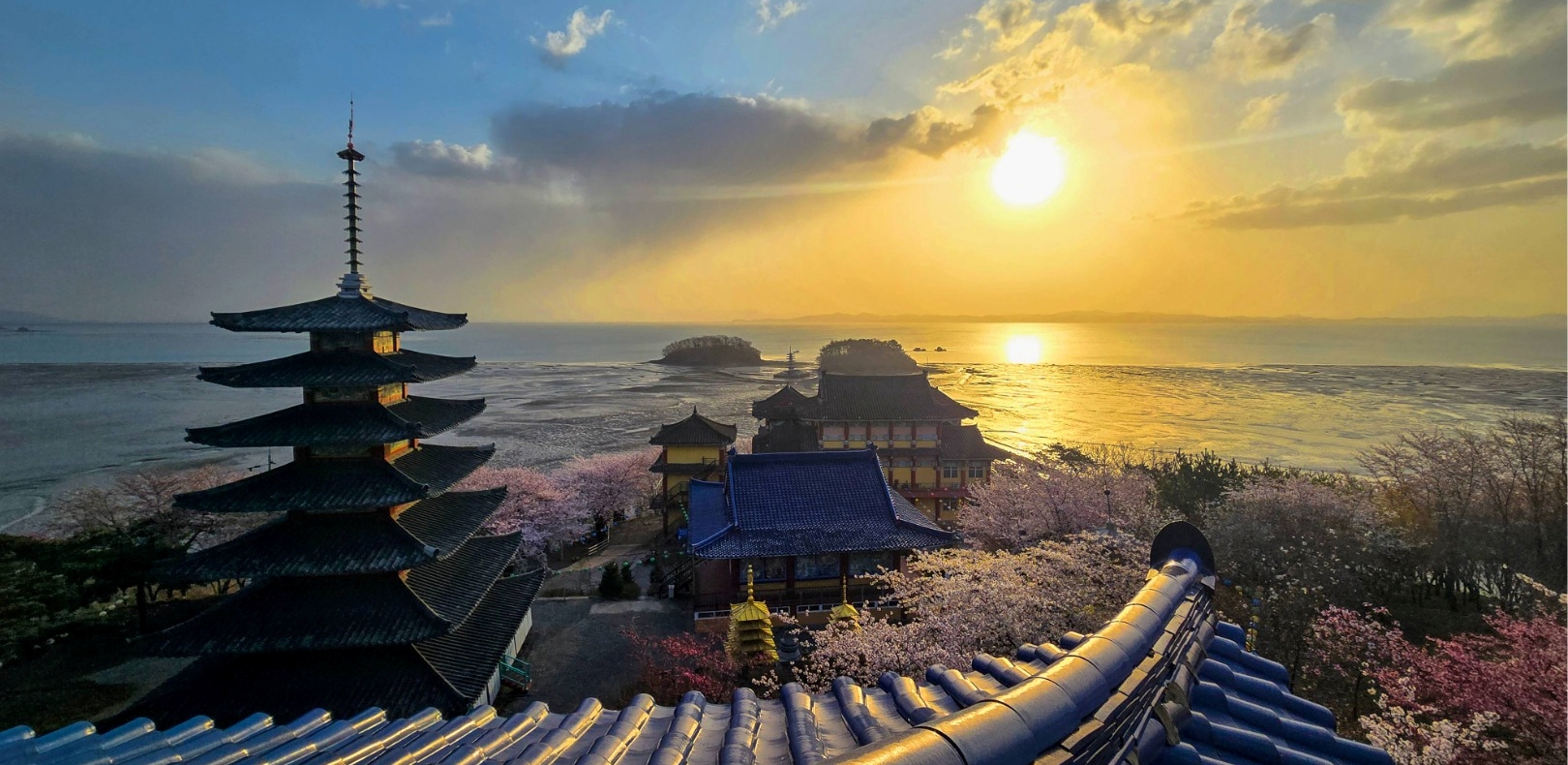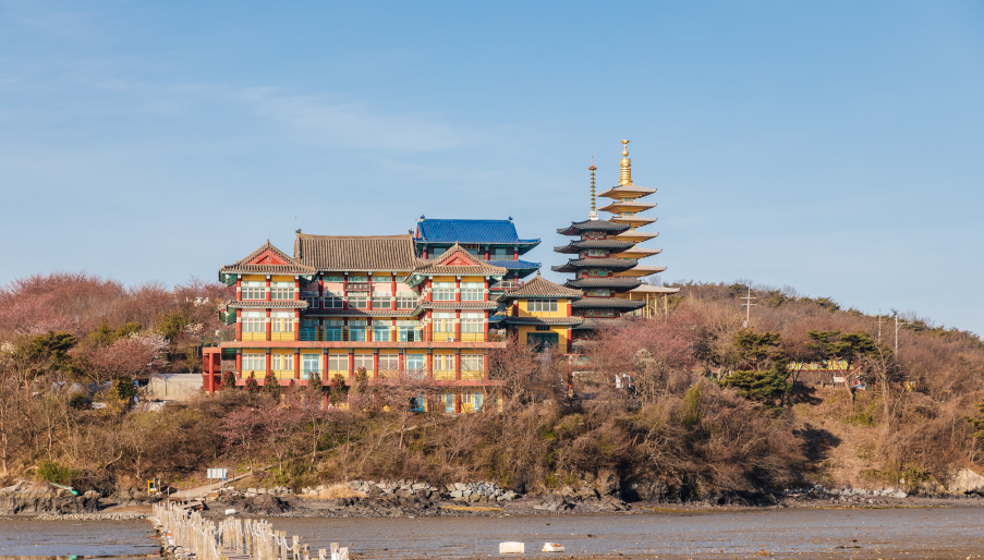 충남 태안군 안면읍에 위치한 안면암은 대한불교조계종 금산사의 말사로, 역사는 비교적 짧지만 많은 여행자들의 필수 방문 코스로 사랑받고 있어요. 그 이유는 바로 사찰 앞에 펼쳐지는 서해 바다 풍경 때문인데요, 바다 위에 떠 있는 듯한 특별한 분위기의 사찰은 단번에 시선을 사로잡는답니다. 독특하게도 3층 구조로 지어진 안면암은 극락보전, 비로전, 나한전 등 층마다 다른 법당이 자리하고 있어요. 이국적인 사찰 구조와 바다 풍경이 어우러지면서 마치 해외 어딘가에 있는 사찰 같은 느낌도 준답니다.