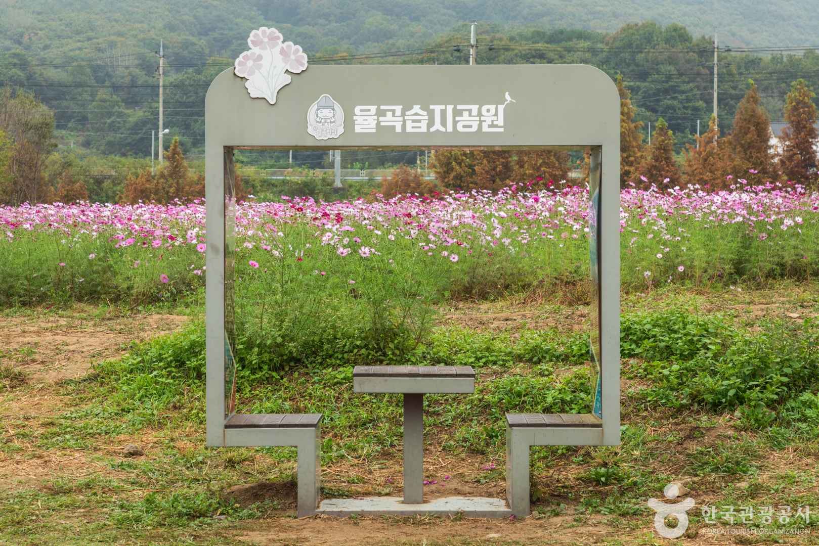 율곡습지공원은 넓은 꽃밭 외에도 고향의 정겨운 시골 풍경을 떠오르게 하는 다양한 조형물과 시설들로 가득 차 있어 편안함과 정감을 자아냅니다.