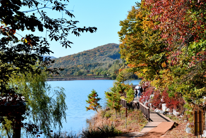 호수를 따라 이어지는 3.6km의 수변데크는 가벼운 산책이나 반려견과의 산책 코스로도 정말 좋아요. 데크길은 대부분 완만한 경사와 넓은 길로 이루어져 있어 아이를 동반한 가족, 노약자 분들도 무리 없이 즐길 수 있어요. 가을엔 데크 옆의 단풍이 바람에 흩날리며 발걸음마다 낙엽이 바스락거리는 소리가 마음을 편안하게 만들어줍니다 🍁