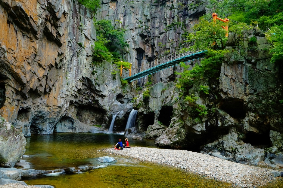 내연산 기슭을 따라 약 10km에 걸쳐 이름 그대로 12개의 폭포가 이어져 있는 이곳은 세계적으로도 드문 아름다운 자연유산입니다. 특히 웅장한 관음폭포와 연산폭포는 절경 중의 절경으로 손꼽히는데요. 누구나 쉽게 걸을 수 있도록 정비된 등산로와 함께 12폭포를 즐기는 완벽한 코스를 지금부터 자세히 살펴보겠습니다.