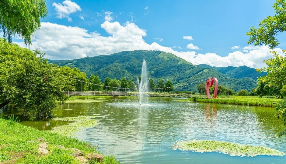 - 하트 모양 출렁다리: 물 위로 아찔하게 떠 있는 붉은 하트형 출렁다리! 사랑하는 사람과 함께 걷기에 딱이에요.