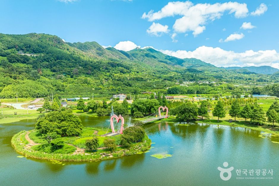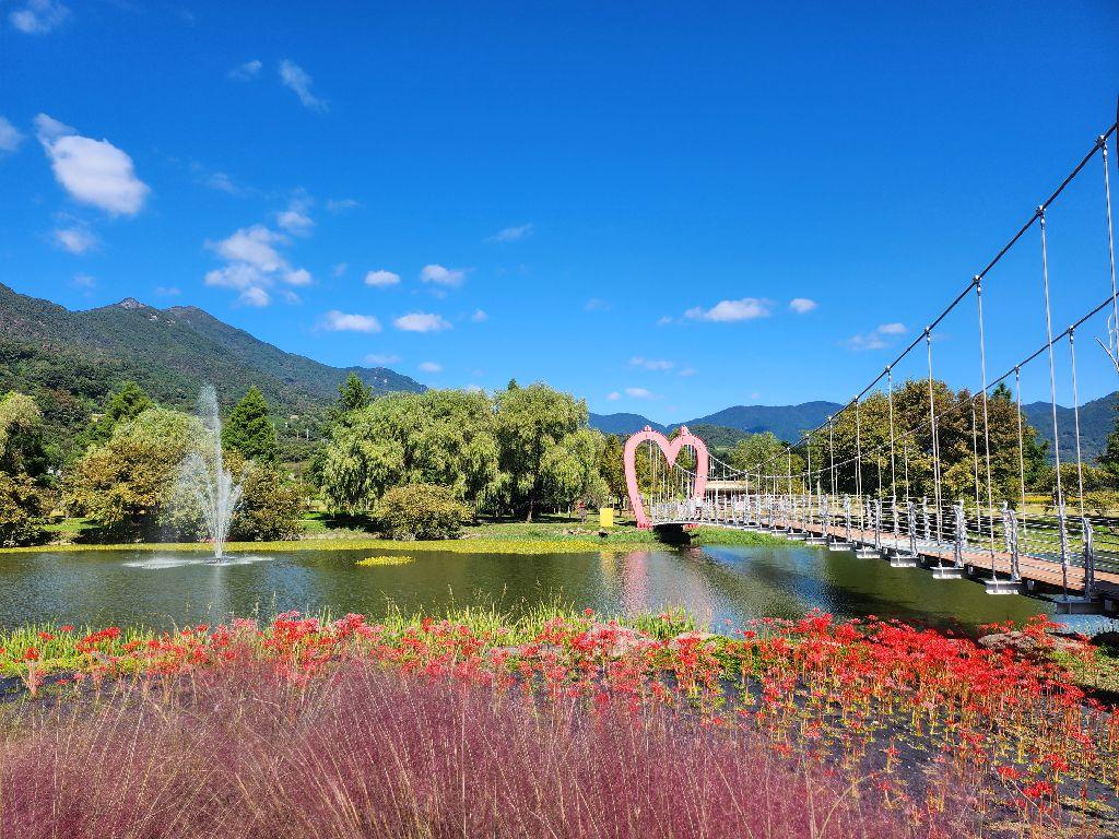 - 하트 모양 출렁다리: 물 위로 아찔하게 떠 있는 붉은 하트형 출렁다리! 사랑하는 사람과 함께 걷기에 딱이에요.
