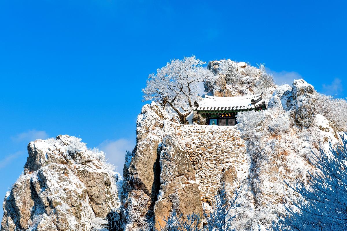 가을엔 단풍이 암자 주변 바위를 물들이며 고즈넉한 정취를 자아내고, 겨울에는 하얀 눈으로 덮인 설경이 펼쳐져 마치 구름 위에 앉아 있는 듯한 착각을 불러일으킬 만큼 환상적이에요.