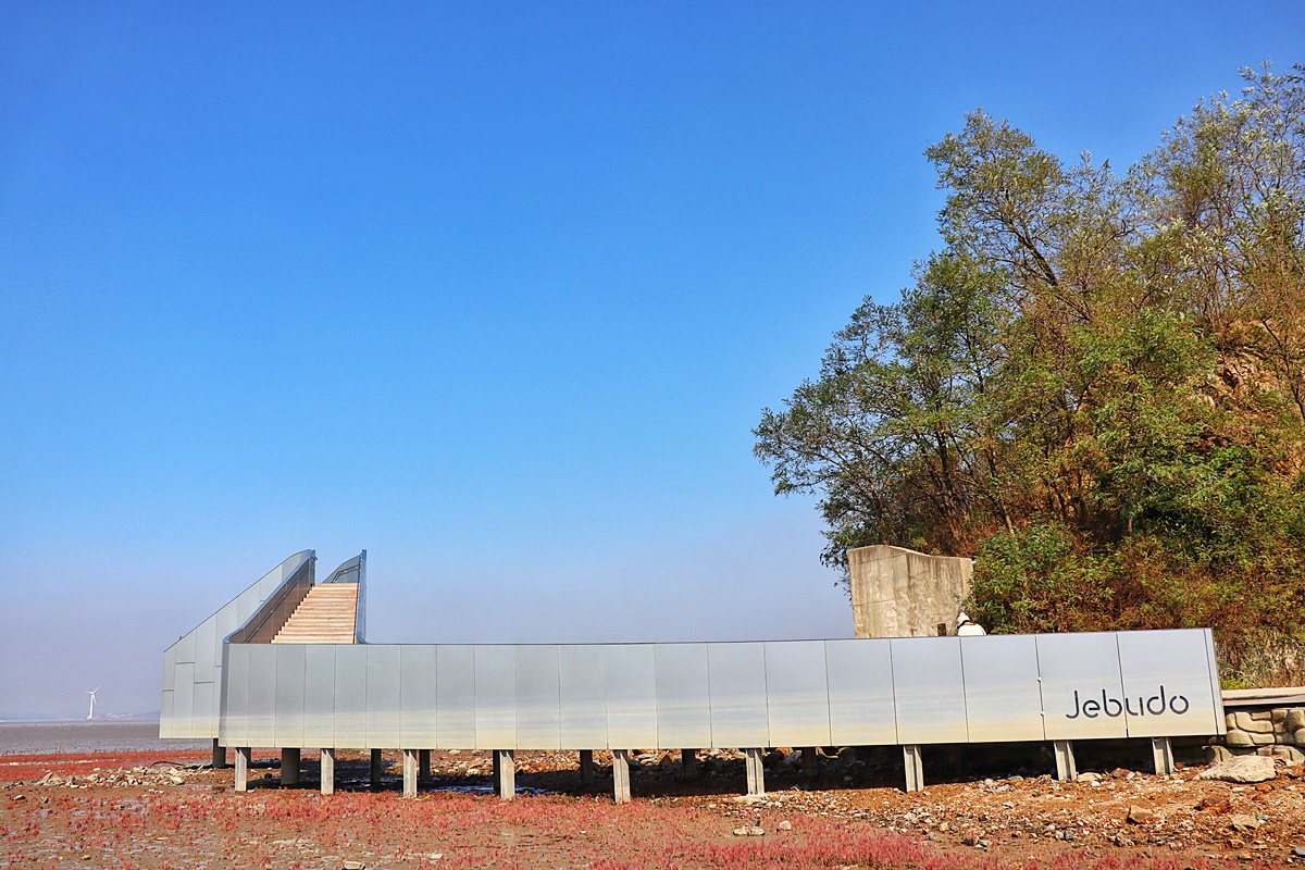 총 길이 44m의 워터워크는 마치 바다 위로 나아가는 전망 데크처럼 설계되어 있어서 끝까지 걸어가면 드넓은 갯벌과 시원한 바다 바람을 온몸으로 느낄 수 있어요. “갯벌 위를 산책하듯 걷는 기분”이 바로 이곳의 매력 포인트!