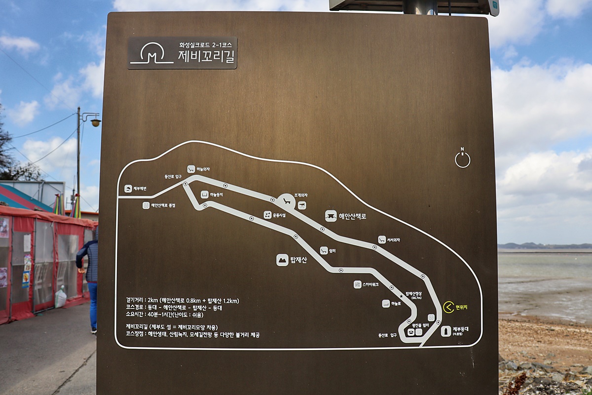 제부도 제비꼬리길은 총 길이 약 2km로 약 40분에서 1시간 정도 소요되는 비교적 짧은 코스예요.