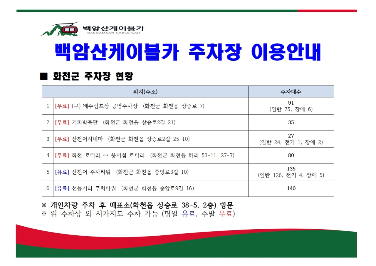 | ⏰ 케이블카 운영시간 | - 주말: 1회차(10:30), 2회차(11:00), 3회차(14:00), 4회차(14:30) - 평일: 2회차(11:00), 4회차(14:30)만 운행 |