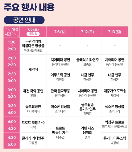 축제 전체 기간은 9일이지만, 실제 공연, 체험, 플리마켓 등은 7월 5~6일, 7월 12~13일 단 4일 동안 집중적으로 운영됩니다. 꼭 주말 일정에 맞춰 방문해야 모든 프로그램을 제대로 즐길 수 있어요!