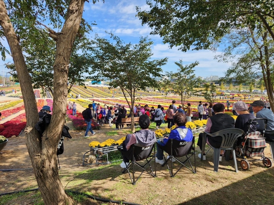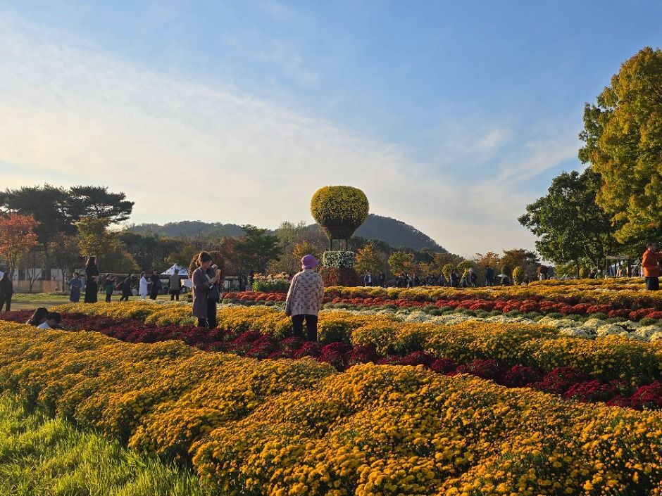 - 🪑 벤치 뷰: 국화밭 사이 벤치에 앉아 자연스럽게 찍는 감성샷