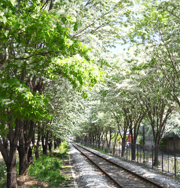 전국 최고의 이팝나무 명소로 알려진 전주 팔복동 철길. 이곳에 봄이 오면 마치 눈이 내린 듯 새하얀 꽃이 활짝 피며 '이팝나무 축제'가 열립니다!