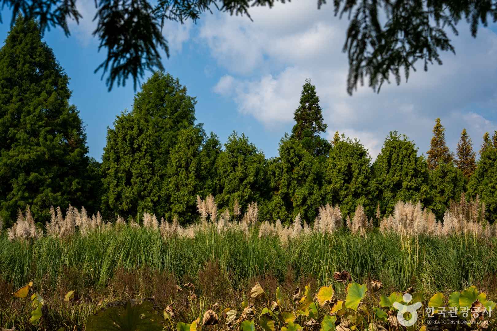 초가을(8월~9월 초)에는 초록빛과 초생 팜파스를, 가을 절정기(10월~11월)에는 완전 만개한 팜파스 + 핑크뮬리를 즐길 수 있어요.
