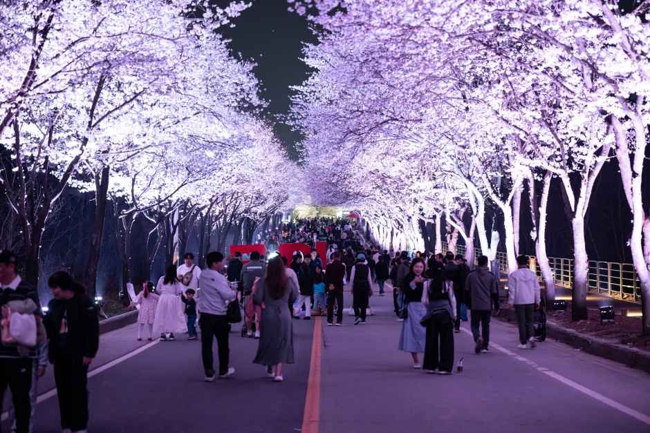 네! 야간에는 별빛 조명이 더해진 벚꽃길이 조성되어 낮과는 전혀 다른 감성적인 분위기를 즐길 수 있습니다.